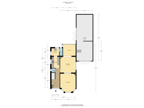Entree. Ruime hal. Deels betegelde toiletruimte met wandcloset en fonteintje. Ruime woonkamer met ensuite deuren naar aangrenzende voorkamer met uitzicht op de straat. Vanuit de woonkamer kom je in de serre/eetkamer, waar je een prachtig uitzicht hebt op de tuin, die je direct kunt betreden via de schuifdeur. Dichte keuken met doorgang naar de bijkeuken. In de bijkeuken bevindt zich een wasmachineaansluiting en ernaast een douche.