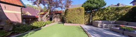 De villa ligt op een royaal perceel van 635 m², volledig omheind en voorzien van een afsluitbare poort. De voorzijde van de woning wordt deels beschut door twee prachtige gele tulpenmagnolia's, en de voortuin is aangelegd met taxushaagjes en lime hortensia's. De ruime achtertuin beschikt over een kunstgras gazon, meerdere zonneterrassen en diverse bomen, waaronder sierappels en taxushagen. Links in de tuin staat de vrijstaande monumentale schuur, liefdevol “het Koetshuisje” genoemd door de huidige eigenaren. Terwijl aan de achterzijde de garage geplaatst is. Achter de haag zijn twee parkeerplaatsen voor deze garage aanwezig.