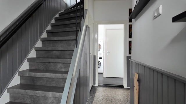 Via de ruime hal met granitovloer komt u in de lichte woonkamer met sfeervolle erker, die zorgt voor een zee aan daglicht. De uitgebouwde woonkeuken heeft een landelijke uitstraling en is voorzien van diverse inbouwapparatuur. Aansluitend vindt u een praktische wasruimte met aansluitingen voor wasmachine en droger, een separaat toilet en een achteringang met garderobe.