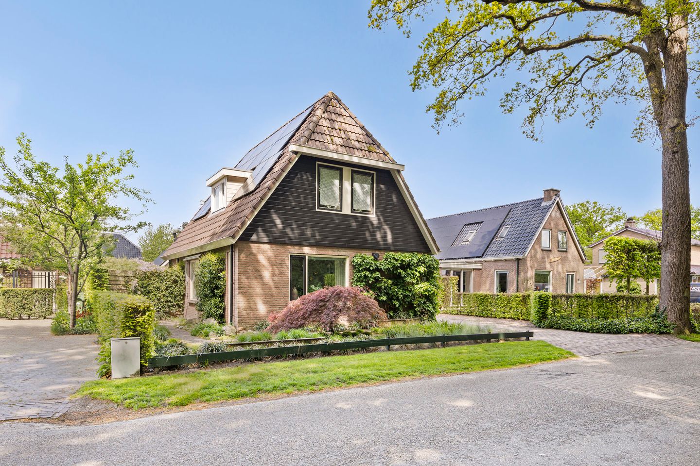 De woning is rustig gelegen en beschikt over drie parkeerplaatsen op eigen terrein. Bij aankomst valt direct de fraaie ligging op: een heerlijk rustige straat, omringd door bomen en natuur.