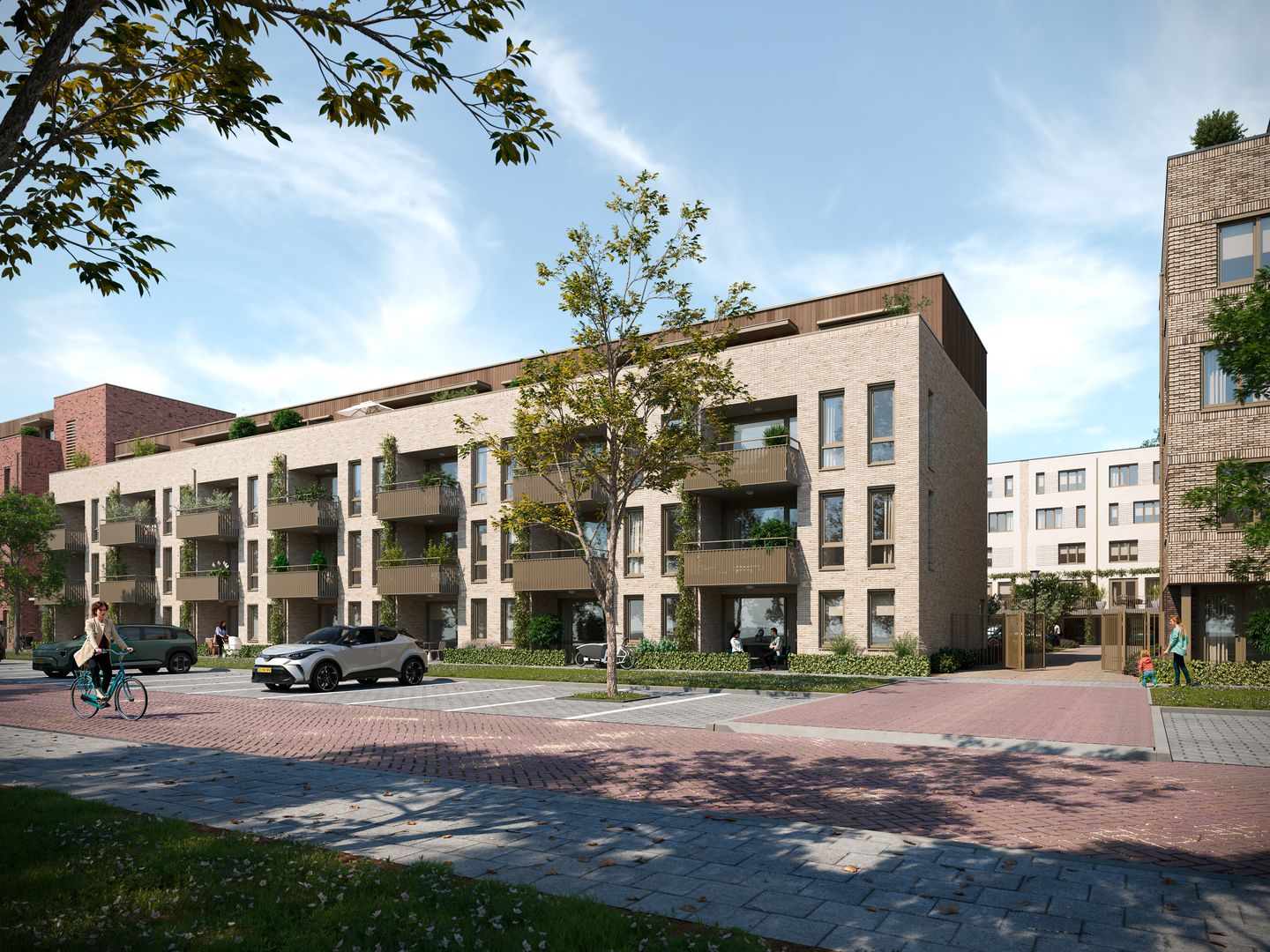 Tussen de blokken 1 t/m 5 ligt straks groen binnenterrein, waar de bewoners een eigen privé parkeerplaats hebben. De ingang van het terrein bevindt zich aan de Van Slingelandtstraat en is afgesloten d.m.v. een hekwerk of speedgate.