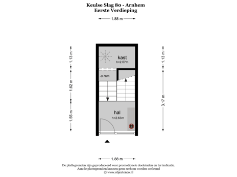 Eerste verdieping: Entree/hal met trapopgang en kastruimte.