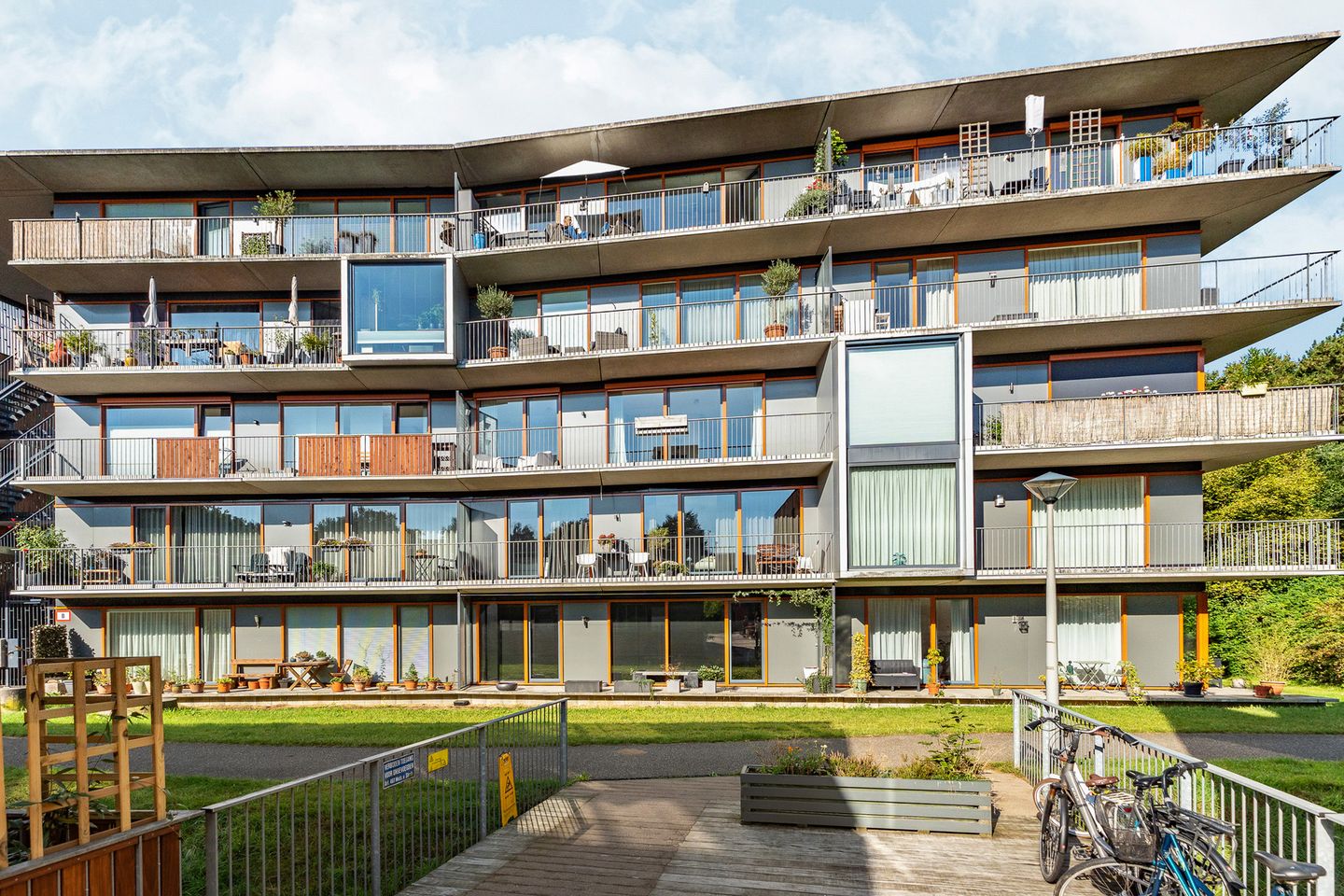 Op het gezamenlijk afgesloten parkeerterrein heb je een toegewezen plek voor je auto. Fietsen kun je kwijt in de inpandige, afgesloten fietsenstalling. Daarnaast is er een privé berging in het souterrain van het complex.