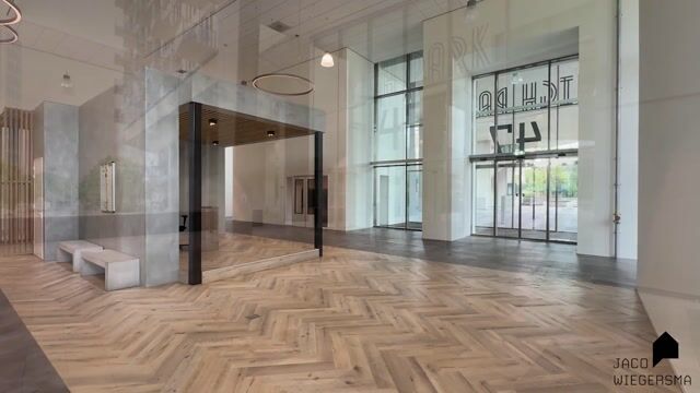 Begane grond: als je via de glazen schuifdeuren binnenstapt in de imposante, sfeervolle centrale hal van High Park, voel je je direct welkom. De sociale en prettige sfeer onder de bewoners van het complex draagt zeker bij aan dat gevoel van thuiskomen. Een van de drie liften brengt je snel en comfortabel naar het penthouse op de 13e verdieping.