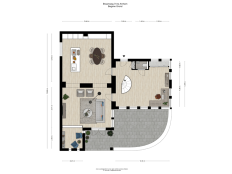 Entree, werk-/speelkamer met een fantastisch hoog plafond van bijna 8 meter en een wenteltrap naar de 1e verdieping. Verder heb je hier een garderoberuimte en een modern toilet met fontein.