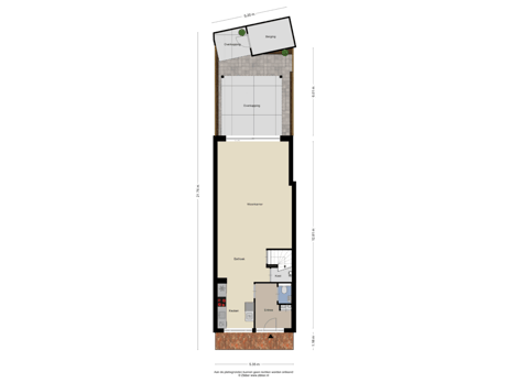 - 33 m² (6,10 meter diep en 5,35 meter breed)