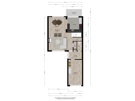 Bij binnenkomst word je verrast door de ruimtelijkheid en het licht. De woonkamer is heerlijk ruim en strekt zich van voor- tot achtergevel. Het eetgedeelte aan de achterzijde geeft uitzicht op de tuin en grenst aan de ruime open keuken. De keuken geeft toegang tot de tuin.