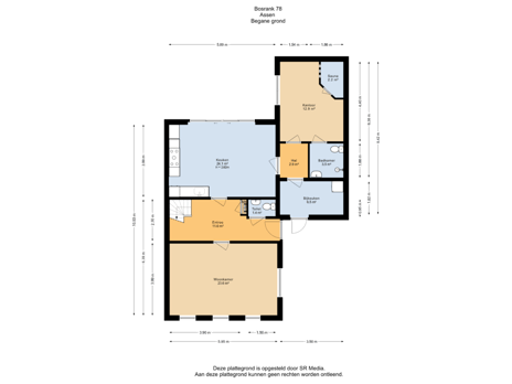 - 121 m² (11,75 meter diep en 10,30 meter breed)