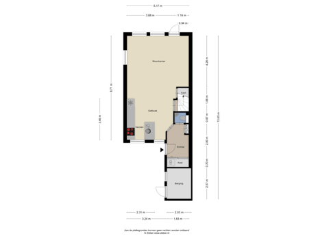 De woning is gemeten op basis van de Branche Brede Meetinstructie (BBMI). Deze meetinstructie is bedoeld om een meer eenduidige manier van meten toe te passen voor het geven van een indicatie van de gebruiksoppervlakte. De Meetinstructie sluit verschillen in meetuitkomsten niet volledig uit, door bijvoorbeeld interpretatieverschillen, afrondingen of beperkingen bij het uitvoeren van de meting.