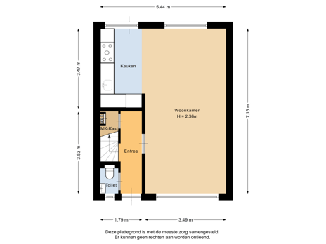 - 79 m² (15,00 meter diep en 5,25 meter breed)