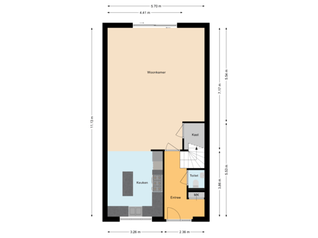- 56 m² (9,34 meter diep en 5,99 meter breed)