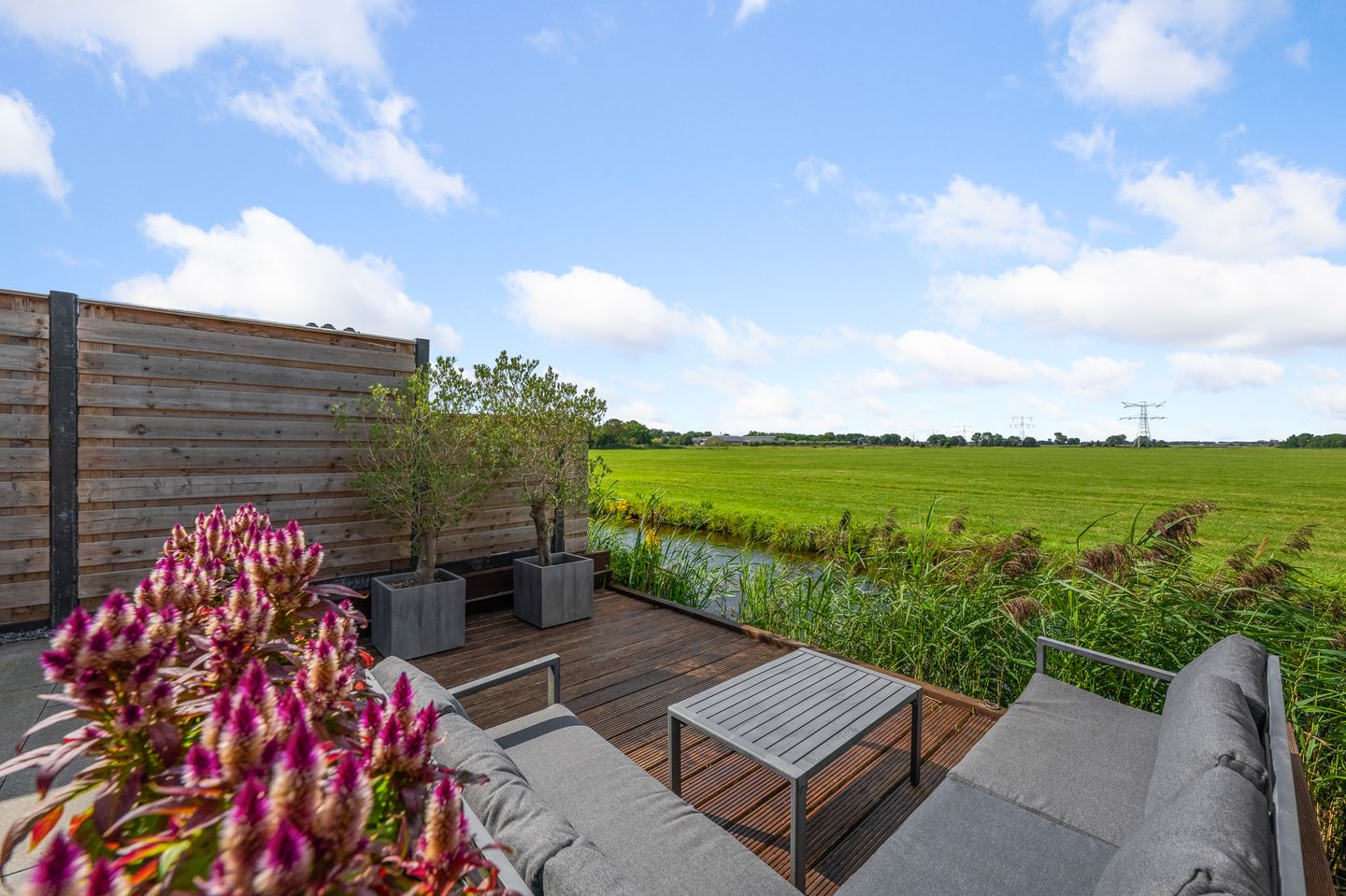 - Vrij uitzicht over weiland, aan het water