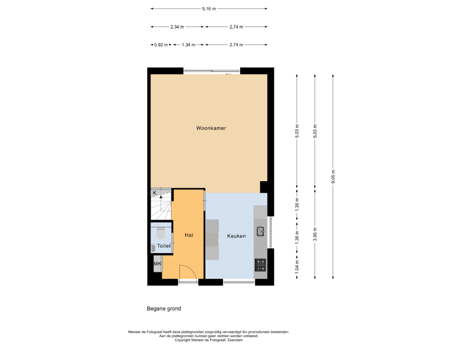 - 43 m² (7,61 meter diep en 5,61 meter breed)