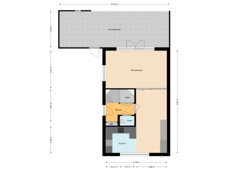 - 100 m² (9,73 meter diep en 10,30 meter breed)