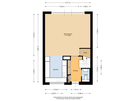 - 57 m² (9,50 meter diep en 6,00 meter breed)