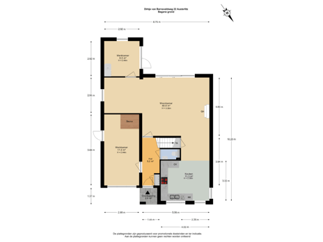 De royale woonkamer over de breedte van de woning geeft een ruimtelijk gevoel. De schouw met gashaard zorgt voor een knusse gezelligheid. Door de grote raampartijen komt er veel licht in binnen en heerst er een rustige sfeer. Middels een grote een kunststof schuifpui is de achtertuin bereikbaar. Vanuit de woonkamer is de kleinere werkkamer in de uitbouw bereikbaar. Hier bevindt zich een praktisch wastafelmeubel met eigen boiler. Met een loopdeur is de achtertuin tevens te bereiken.