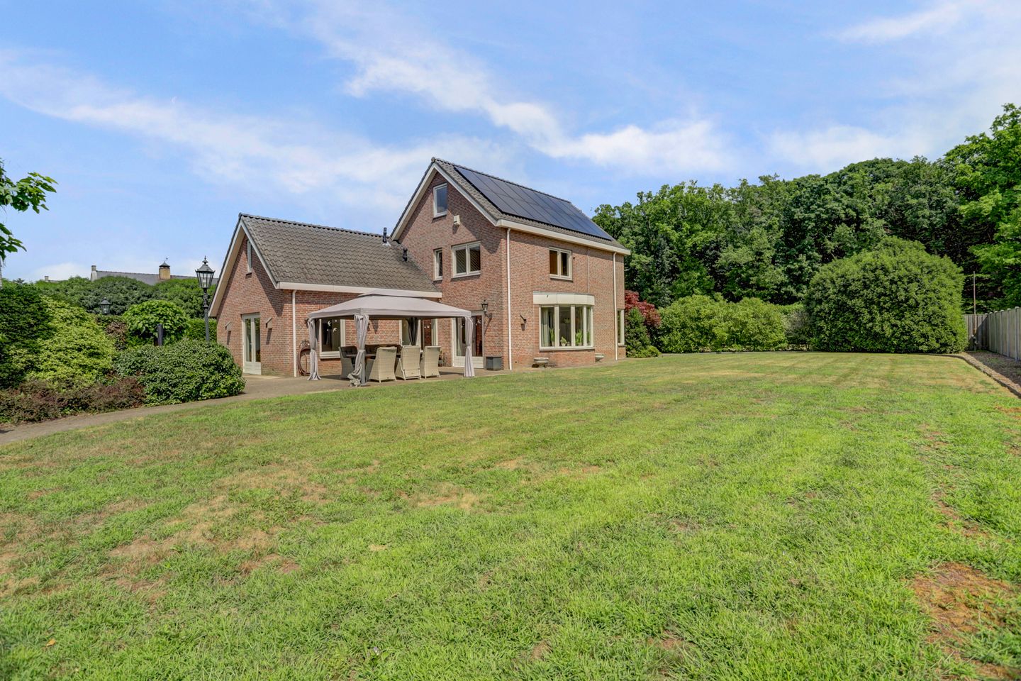De woning is gelegen op een royaal perceel van maar liefst 3.465 m² en wordt volledig omringd door een prachtige, met zorg aangelegde tuin. Het groen is volwassen, rijk in variatie en biedt u een oase van rust en privacy. Hoge, volwassen bomen zorgen voor beschutting en een natuurlijke afscheiding, waardoor u het gevoel heeft midden in de natuur te wonen.