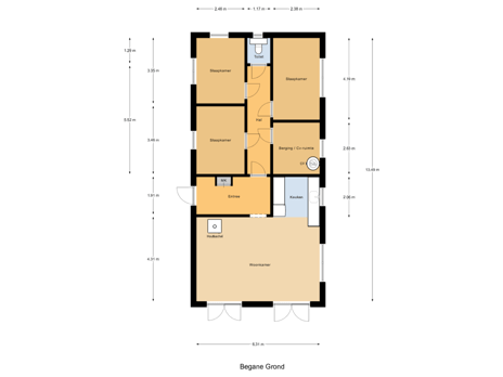 De woning is voorzien van een woonkamer, keuken, 3 slaapkamers, een toiletruimte en een berging/cv-ruimte. Er is geen badkamer aanwezig.