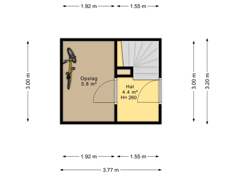 Via de eigen entree op de begane grond heeft u toegang tot de berging, waar u de fietsen of andere zaken kunt plaatsen. De trapopgang brengt u naar de eerste verdieping.