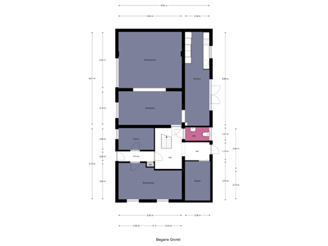 Via de centrale entree komt u in de hal, die toegang biedt tot diverse vertrekken. Aan de linkervoorzijde bevindt zich een sfeervolle woonkamer met authentieke uitstraling en veel lichtinval. De houten kozijnen, paneeldeuren en de originele indeling geven deze ruimte direct een warm gevoel.
