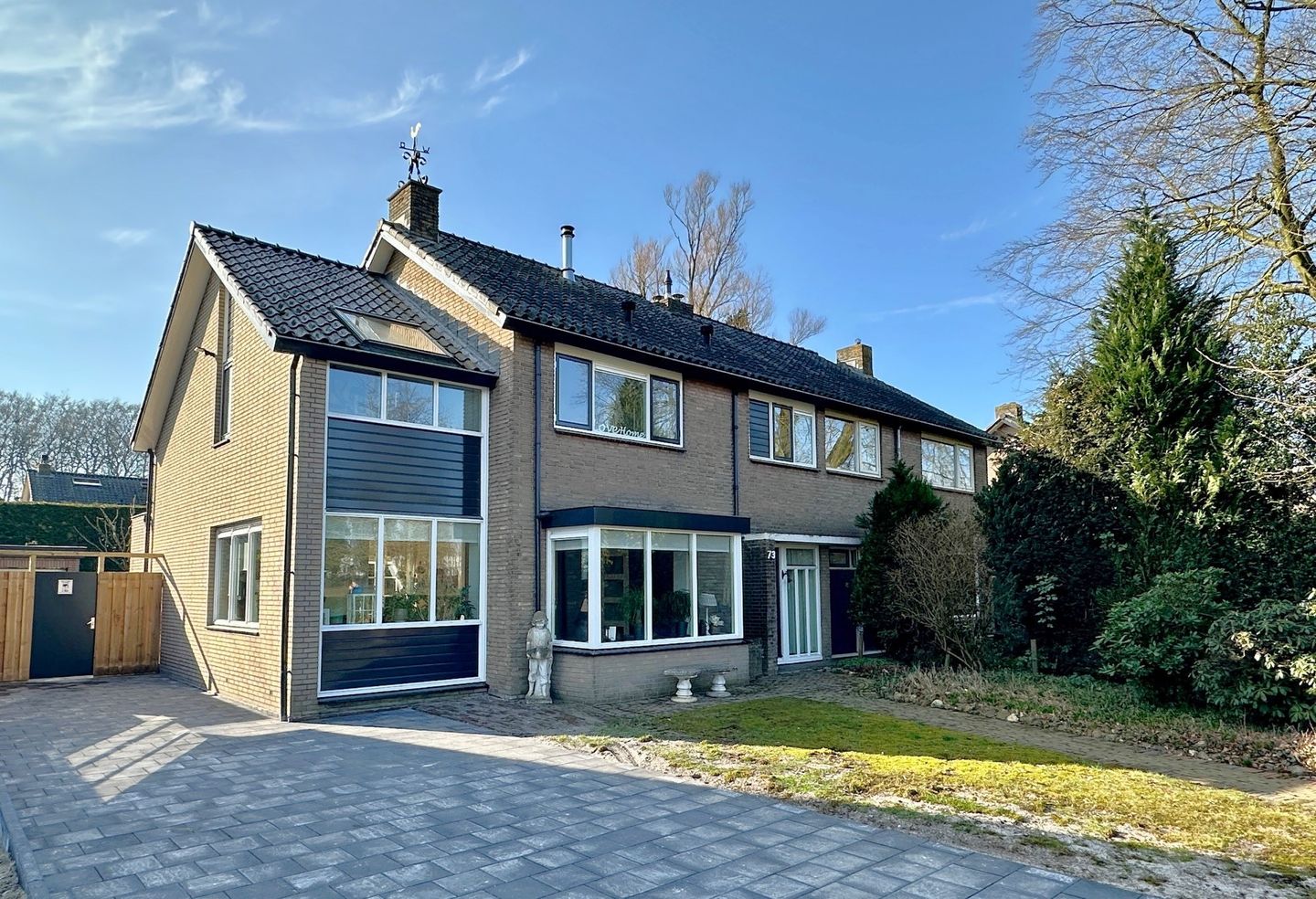 Bij aankomst valt al gelijk de uitbouw aan de zijgevel op.. Riant en over twee verdiepingen met kap.. eenmaal binnen de bevestiging.. een riante living met aparte werkkamer..