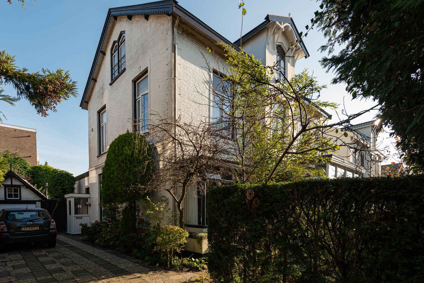De villa is aan de achterzijde uitgebouwd en beschikt over een royale voor- en achtertuin met vijvers, veel groen, een terras voor de serre om te genieten van het avondzonnetje, een lange oprit voor meerdere auto's en een vrijstaande stenen originele garage.