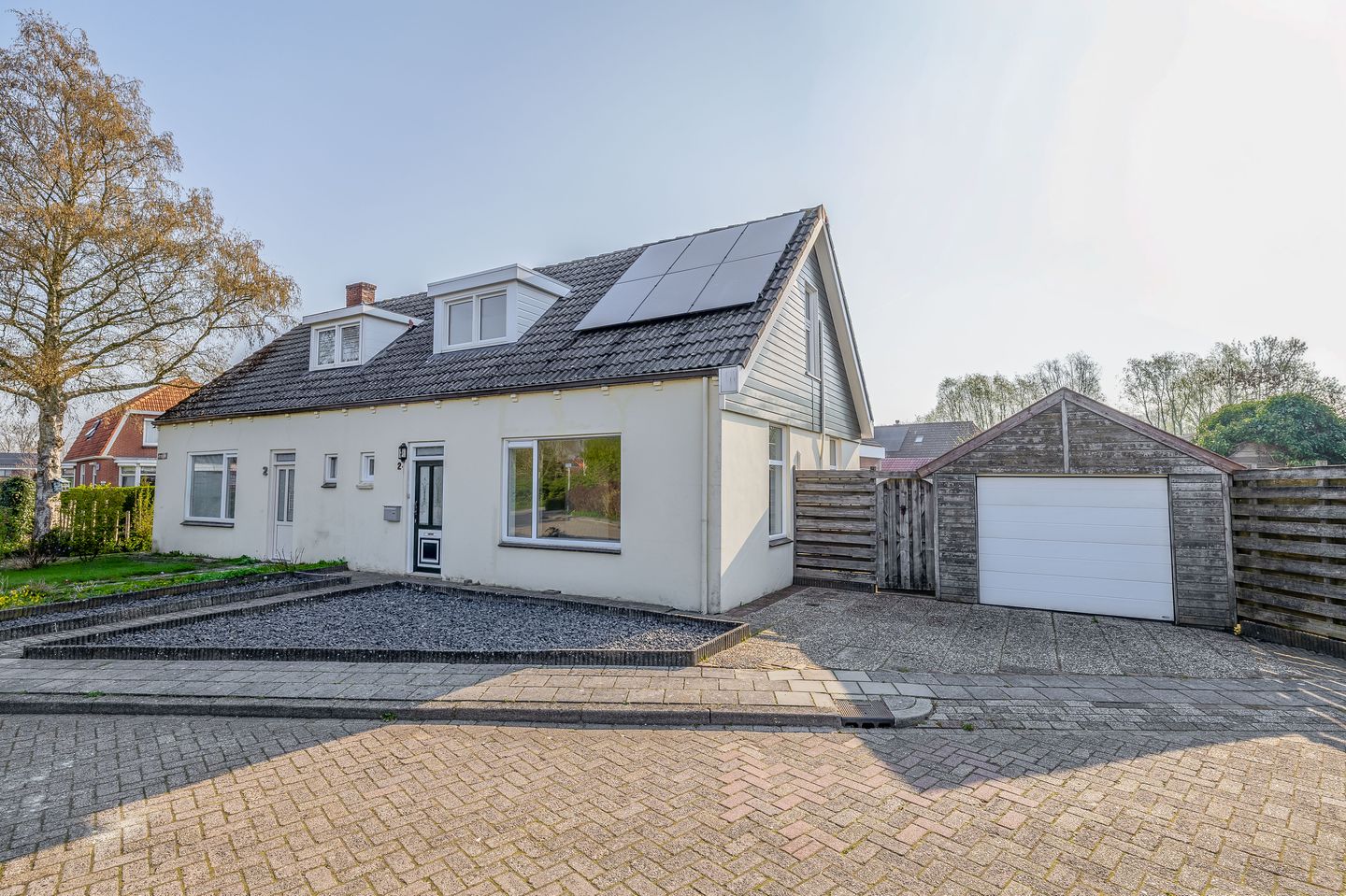 Gelegen in een rustige woonomgeving staat deze gemoderniseerde twee-onder-één-kapwoning met eigen oprit, vrijstaande houten garage, erf en zonnige tuin op circa 220 m² eigen grond.