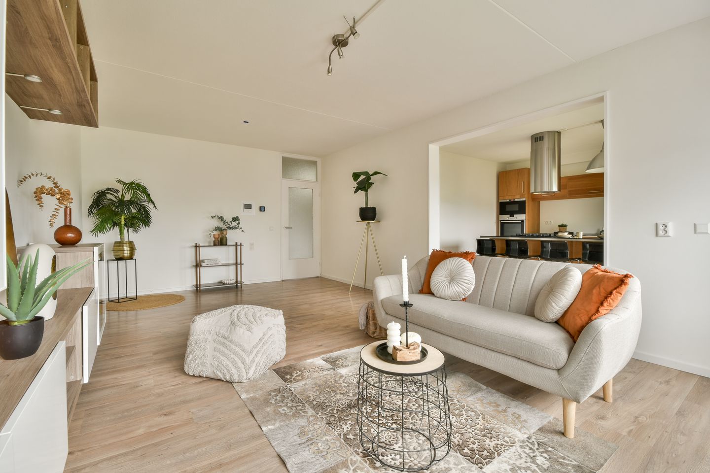 Step into a generously laid-out 3-room apartment (±92 m²) that instantly feels like home. The heart of the space is a stunning open kitchen with a large island, perfect for cooking, dining, and entertaining. It flows seamlessly into the light-filled living room, with large windows offering a calming green view.