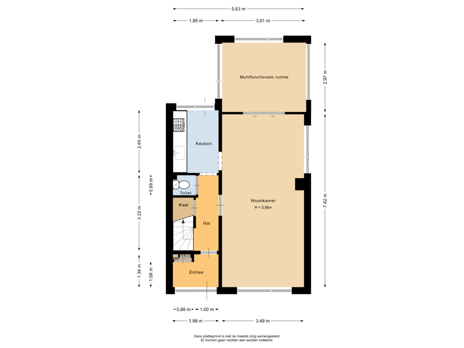 - 53 m² (10,50 meter diep en 5,00 meter breed)