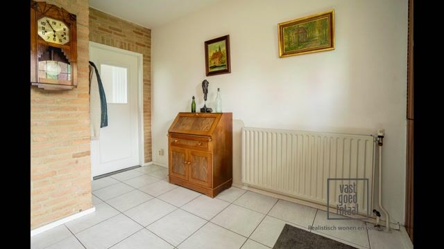 Aansluitend bereikt u de praktische bijkeuken. Deze extra ruimte is voorzien van een tegelvloer, deels betegelde wanden, een wastafel en aansluitingen voor het witgoed. Ook vindt u hier de toiletruimte en een deur naar de tuin, ideaal als achterom en als dagelijkse binnenkomst.