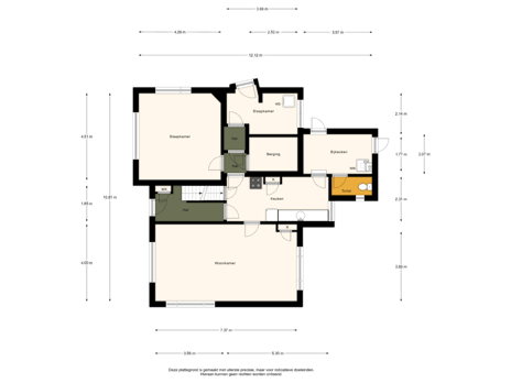 Via de entree en hal komt u in de royale, lichte woonkamer met een prettig zit- en eetgedeelte. Aansluitend bevindt zich de dichte keuken met vaste kasten en keukenopstelling, met toegang tot de droge kelder met stahoogte. Vanuit de keuken is er een doorgang naar de bijkeuken met tuindeuren en een toiletruimte.