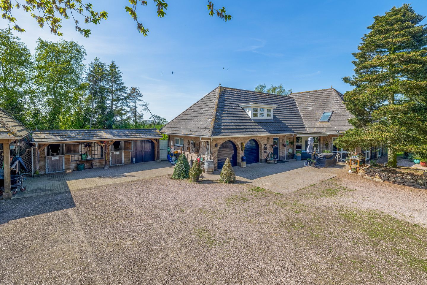 Op een prachtige locatie, omgeven door groen, vindt u deze royale vrijstaande woning met een doordachte indeling, hoogwaardige afwerking en volop ruimte voor het hele gezin én hobby’s of beroep aan huis. De woning beschikt over een zeer ruime woonkamer, een grote semi open woonkeuken, meerdere badkamers, momenteel 3 slaapkamers (potentieel voor meerdere), een dubbele garage en diverse bijgebouwen waaronder een grote schuurruimte, een kapschuur en paardenstallen. Ideaal voor liefhebbers van buitenleven, dieren of ruimte om te ondernemen. Dankzij de duurzame bouw met onder andere vloerverwarming, 28 zonnepanelen (2023) en goede isolatie is dit huis niet alleen comfortabel, maar ook toekomstbestendig. Naar wens kan de woning gemoderniseerd worden.