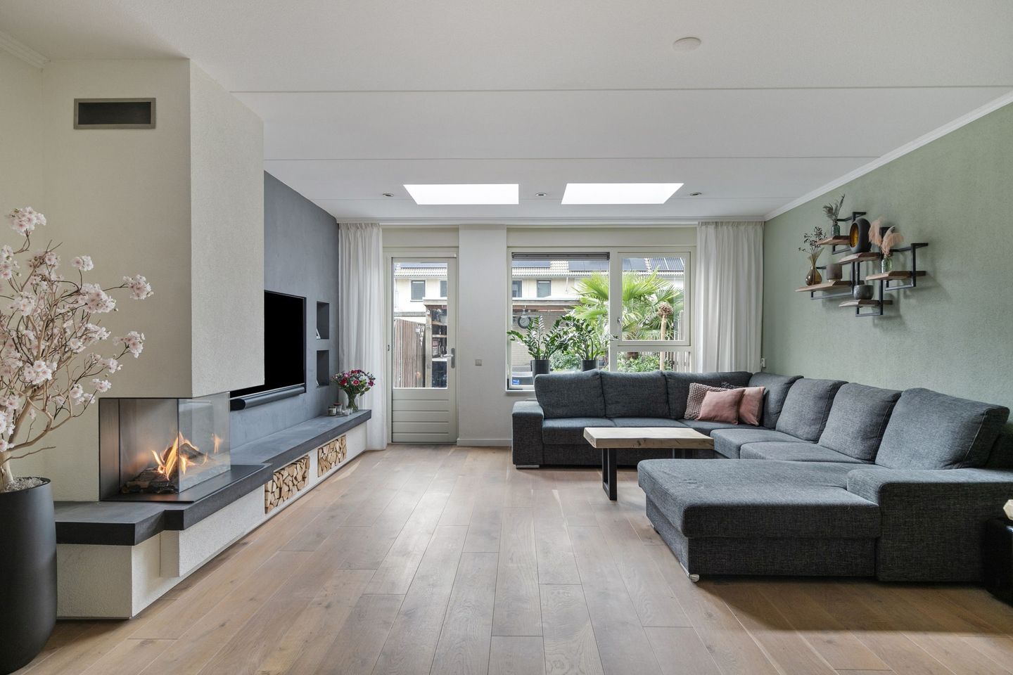 Onder het afdakje (handig als het regent!) vind je de entree van deze tussenwoning. De gashaard in combinatie met de prachtige houtenvloer geven je direct een warm welkom zodra je de woonkamer binnenstapt. De uitbouw en lichtkoepels aan de achterzijde geven een ruimtelijk gevoel, waardoor je een gezellige zit- en eethoek kan creëren. In de woonkamer vind je tevens de toegangsdeur naar de achtertuin.