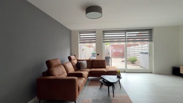 De tuingerichte woonkamer is sfeervol en comfortabel afgewerkt met vloerverwarming en een keramische parketvloer (2022). Vanuit de woonkamer heeft u via een schuifpui toegang tot de diepe en zonnige achtertuin welke is gelegen op het westen. Hier vindt u een stenen berging en een achterom. Aan de achterzijde is een zonnescherm geplaatst voor extra comfort op warme dagen.
