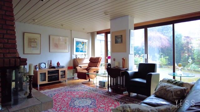 3. Riante woonkamer met aanbouw, met grote raampartijen en zicht op de tuin;