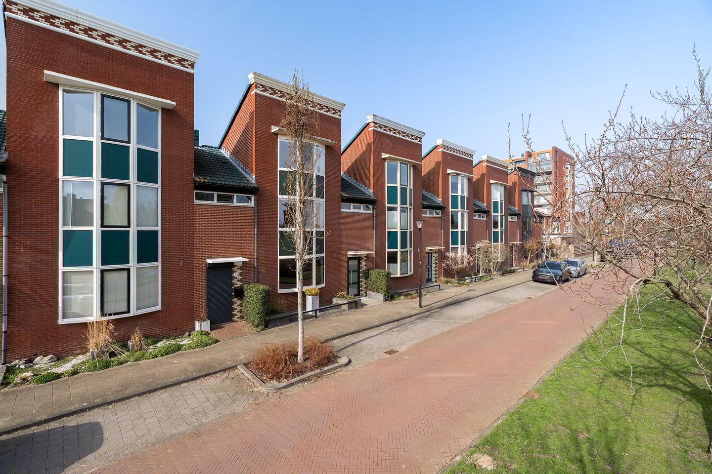 De kozijnen aan de voorzijde zijn vervangen door aluminium kozijnen met hoge isolatiewaarde.