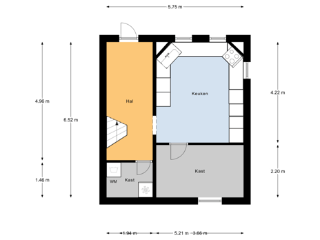 De indeling (dijkniveau) is als volgt: entree, hal met toilet, meterkast, trap naar de verdieping en naar het souterrain en toegang tot de gezellige L-vormige woonkamer van ca. 30 m² met open haard en een loopdeur naar het balkon (575 x 225) waarop u de gehele morgen heerlijk kunt genieten van de (opkomende) zon.