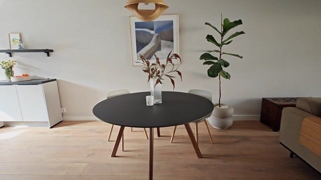 De absolute blikvanger van de woonkamer is de cinewall. Deze is in 2025 met veel zorg vernieuwd en afgewerkt met de exclusieve Clay Wall Scrub (Shades by Eric Kuster). De handgeschilderde deurtjes en de verfijnde afwerking geven de wand een warme, natuurlijke uitstraling met een subtiele dieptewerking. Geïnspireerd door de populaire Japandi-stijl combineert deze cinewall minimalistische rust met zachte, natuurlijke accenten, waardoor een sfeervol geheel is ontstaan dat zowel overdag als in de avond tot zijn recht komt.