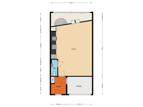 - 60 m² (10,50 meter diep en 5,75 meter breed)