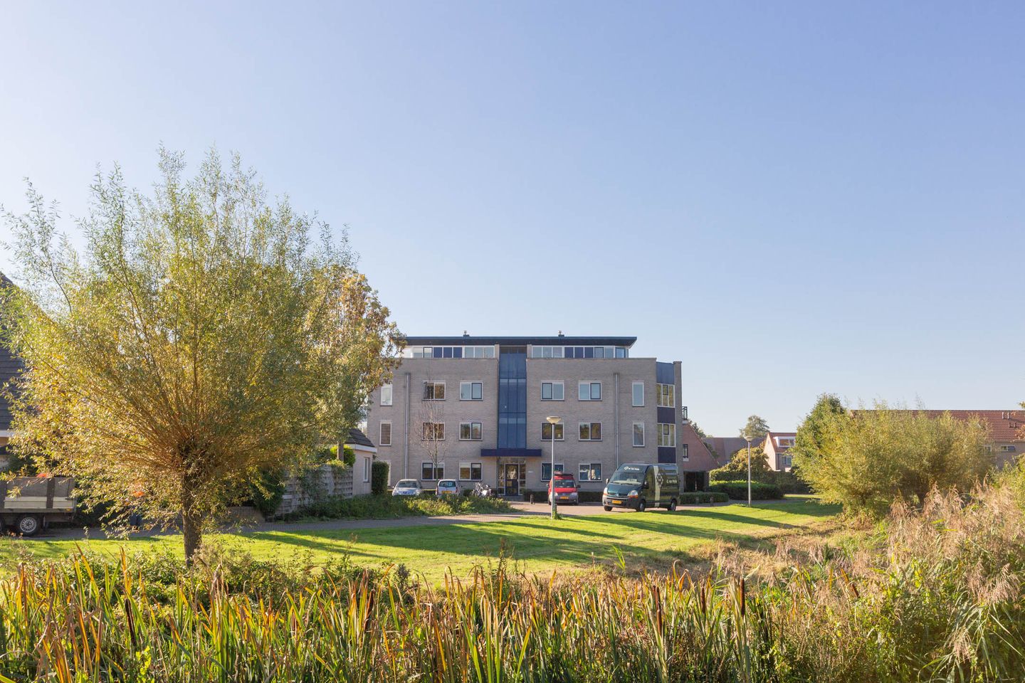 Het appartement is werkelijk op een prachtig plekje gelegen met een vrij uitzicht, wat elke dag weer genieten is. Nabij het complex bevinden zich meerdere parkeerplaatsen, zo kunt u de auto altijd dichtbij uw woning parkeren. Verder ligt het appartement in woonwijk 'Norschoten'. De supermarkten, het centrum van Barneveld en andere openbare voorzieningen bereikt u met enkele minuten.