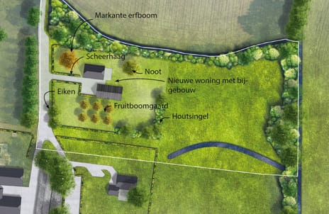 Een kaart zonder maten die de ligging van de percelen aangeeft. Bevat grenzen en perceelnummers.