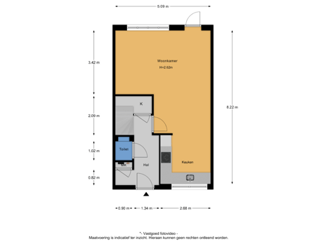 - 62 m² (11,25 meter diep en 5,50 meter breed)