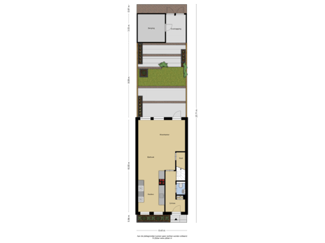 - 60 m² (12,00 meter diep en 5,00 meter breed)