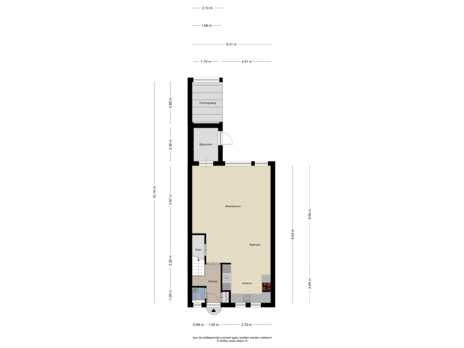- 87 m² (16,00 meter diep en 5,45 meter breed)