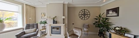 Vanuit de hal komt u binnen bij de eethoek, waarna u doorloopt naar de ruime woonkamer. Door het grote raam aan de voorzijde van de woning komt er veel natuurlijk licht naar binnen. Het uitvalscherm zorgt voor schaduw en comfort op warme dagen. De gezellige houtkachel en het karakteristieke plafond geven de woning een warme uitstraling.