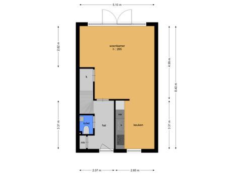 - 71 m² (13,50 meter diep en 5,25 meter breed)