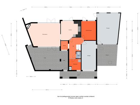 entree, hal, toilet, bijkeuken met meterkast en wasmachineaansluiting, half open woonkeuken met diverse inbouwapparatuur en toegang tot terras, royale woonkamer met open haard en zowel tuindeuren naar het terras als naar de patio, studeerkamer, inpandige garage, aangebouwde garage, carport;
