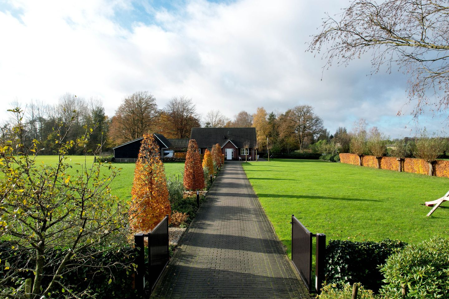 De woning ligt op een royaal perceel van maar liefst 2.543 m² en biedt je rondom volop ruimte en privacy. De fraai aangelegde tuin, voorzien van druppel-sproeiinstallatie, is een oase van groen, met een sfeervolle siertuin, een groot grasveld en meerdere zonneterrassen waar je de hele dag door van de zon kunt genieten. Via je eigen oprijlaan rijd je het terrein op en parkeer je met gemak meerdere auto’s op eigen erf. De combinatie van ruimte, groen en praktische indeling maakt dat je hier iedere dag het gevoel hebt echt landelijk te wonen, terwijl alle voorzieningen toch dichtbij zijn.