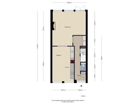 - 69 m² (12,00 meter diep en 5,75 meter breed)