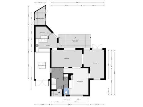 - 77 m² (9,00 meter diep en 8,50 meter breed)
